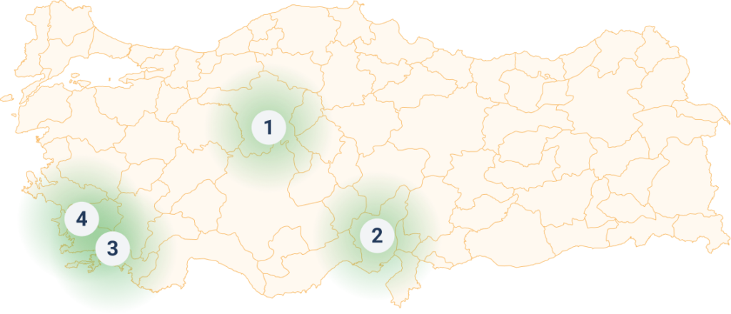 Adana (Otluk, Damyeri, Zerdali) Ankara (Gudul, Yesiloz)